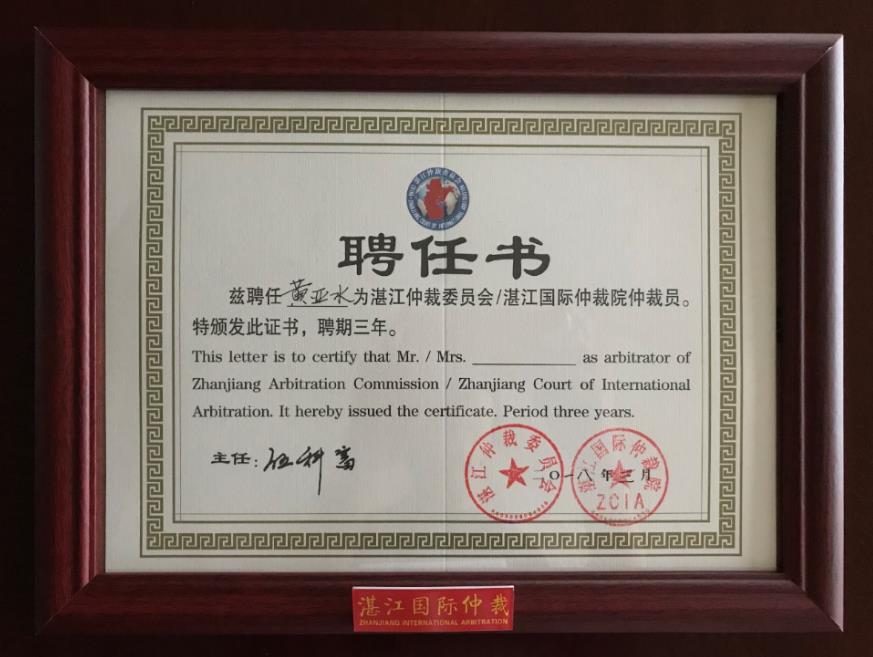 湛江國際仲裁院聘任書