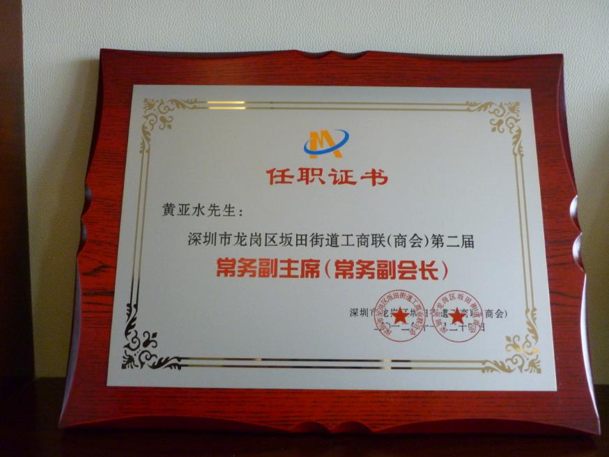 擔(dān)任深圳市龍崗區(qū)坂田街道商會(huì)理事會(huì)副會(huì)長