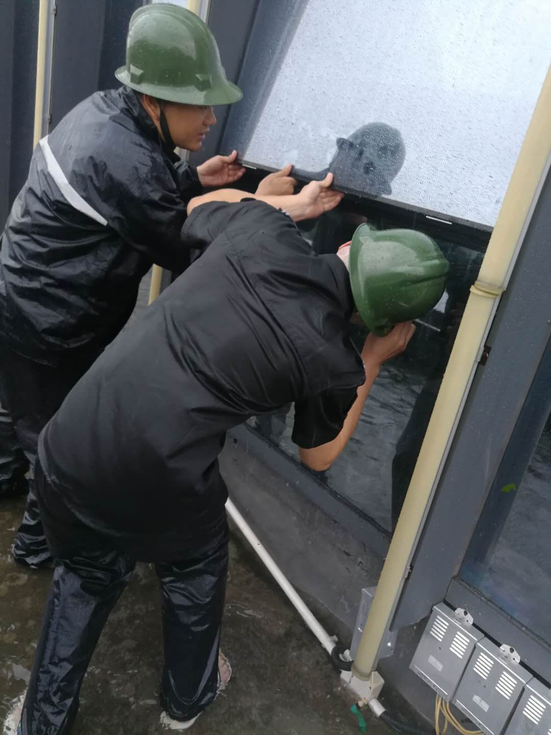 面對(duì)即將來(lái)臨的超強(qiáng)臺(tái)風(fēng)暴雨,和潤(rùn)居物業(yè)全體動(dòng)員、堅(jiān)守崗位、分工有序、全力以赴做好各項(xiàng)準(zhǔn)備工作??头藛T通過(guò)小區(qū)公告欄、小區(qū)LED顯示屏、業(yè)主微信群等發(fā)布了關(guān)于臺(tái)風(fēng)暴雨天氣的溫馨提示,安全員認(rèn)真進(jìn)行防臺(tái)風(fēng)、防暴雨設(shè)備材料的災(zāi)前檢查,包括檢查排水設(shè)備是否運(yùn)轉(zhuǎn)正常,地溝是否暢通,防沙備料是否充足等。并仔細(xì)巡查小區(qū),提前發(fā)現(xiàn)潛在的安全隱患,逐點(diǎn)檢查關(guān)閉各樓棟內(nèi)的公共門窗及天臺(tái)門,逐戶上門協(xié)助業(yè)主清理陽(yáng)臺(tái)外掛花盆等危險(xiǎn)物品,對(duì)陽(yáng)臺(tái)雨棚進(jìn)行了安全檢查和加固,防止刮風(fēng)掉落傷人。